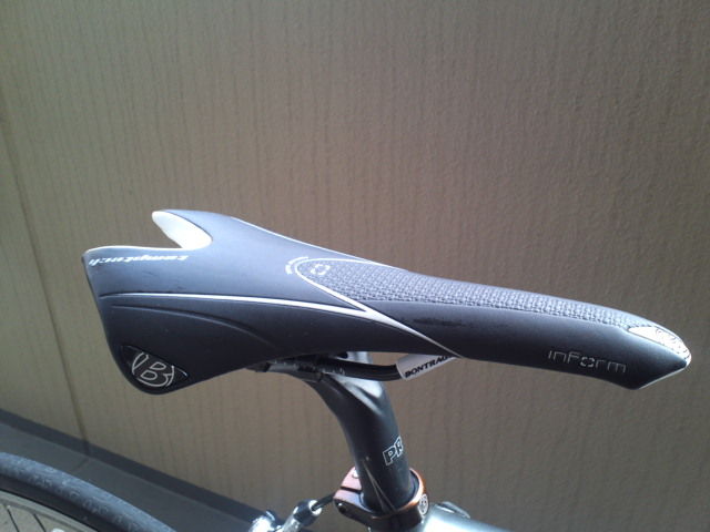 新しく入手したサドル「BONTRAGER inform RXL」。フィジーク アリオネに不満があったわけではないが、3年同じモデルを使っていたので気分転換にサドル交換。